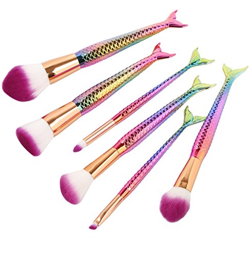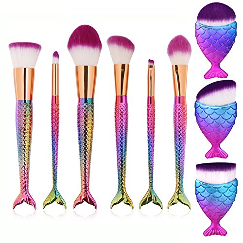 Multipurpose - This 9pcs mermaid makeup brushes set contains powder brush, foundation brush, blush brush, concealer brush, contour brush, eyeshadow brush, eyebrow brush, eyeline brush, lip brush and fan-shaped brush. Multi-sized brushes will meet your variety makeup applications.