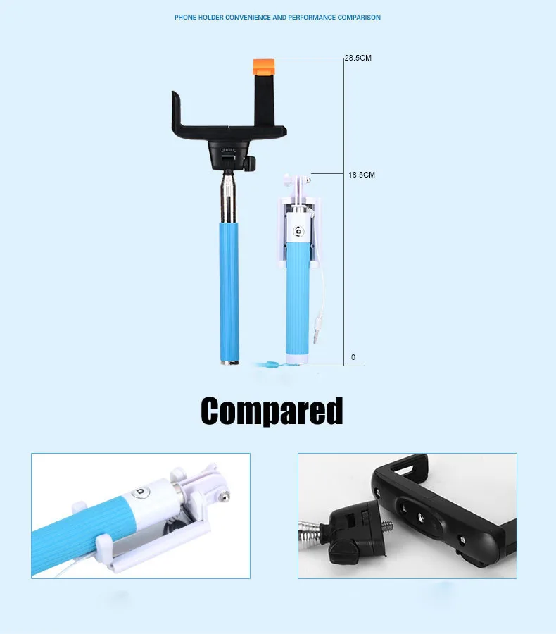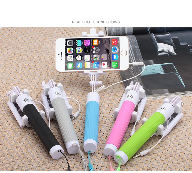 - SELFIE Extendable Monopod with 3.5mm Jack Cable and Remote Button for IOS and Android system.