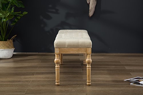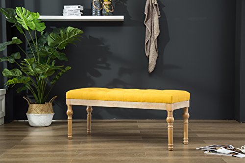 -. Brand : FurnitureMaxx -. Feature : Dining bench features linen and cotton fabric upholstery on the seat, available in your choice of color. / Constructed with solid hardwood for long lasting, also offering an antique-inspired look. / Premium fabric upholstery gives it a high-end touch, while the simple addition turned legs add a glam touch that really makes the design. Coordinate this bench with other pieces in the Habit Dining Room Collection for a matching room set. / Set up dimensions: 48" W x 16"D x 19.5"H / Some assembly required, all parts and instructions included. Photo May Slightly Different From Actual Item in Terms of Color Due to the Lighting During Photo Shooting or the Monitor's Display -. Label : Furnituremaxx -. Manufacturer : Furnituremaxx -. Model : CB161 -. MPN : CB161 -. PartNumber : CB161 -. ProductGroup : Furniture -. ProductTypeName : HOME_FURNITURE_AND_DECOR -. Publisher : Furnituremaxx -. Studio : Furnituremaxx -. Title : Habit Solid Wood Button Tufted Dining Bench