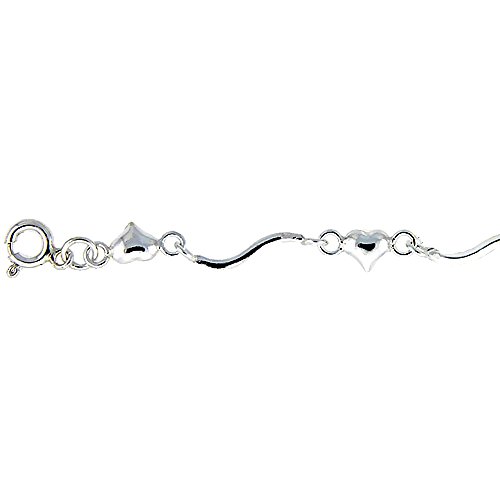 -. Title : Sterling Silver Anklet with Hearts, fits 9 - 10 inch ankles
