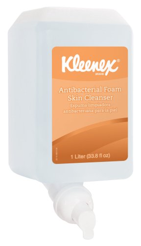 -. Binding : Misc. -. Brand : Kimberly-Clark Professional -. Color : Clear -. Feature : Contains 0.5% Triclosan to kill harmful germs such as E. Coli, Staphylococcus aureaus and Salmonella / Contains aloe and provitamin B5 to moisturize the skin / High capacity for less refilling and maintenance time. Easy-to-load cassette clicks right into place. / Bottle is recyclable after the pump is removed / For use only with the Kimberly-Clark Professional* Cassette Skin Care Dispenser -. Label : Kimberly Clark Professional -. Manufacturer : Kimberly Clark Professional -. Model : 9439258 -. MPN : 91554 -. NumberOfItems : 6 -. PackageQuantity : 1 -. PartNumber : 91554 -. ProductGroup : BISS -. ProductTypeName : JANITORIAL_SUPPLY -. Publisher : Kimberly Clark Professional -. Studio : Kimberly Clark Professional -. Title : Kimberly-Clark Kleenex 91554 Fresh Fragrance Antibacterial Skin Cleanser, 1000mL, Clear (Case of 6)
