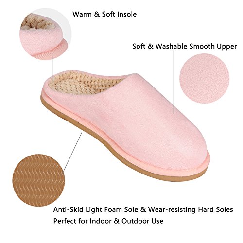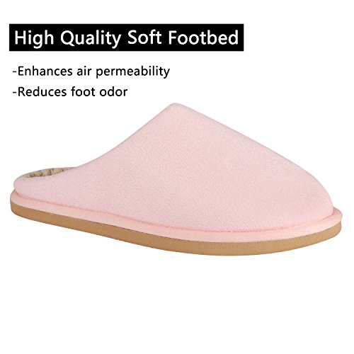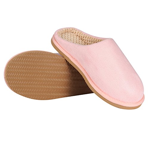 The insole in this slipper is constructed from 3 layers of memory foam and sponge. The top layer is high-density memory foam which offers a steady, elastic and comfortable foot feeling. The bottom 2 layers are sponge. They are softer and more comfortable than most slippers in the marketplace.
