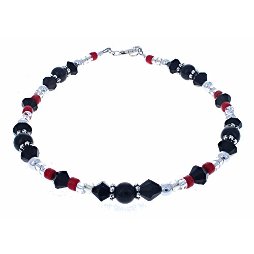 -. Title : Womens Black Onyx, Miyuki, Czech Fire Polished Glass & Sterling Silver Ladies Beaded Gemstone Anklet