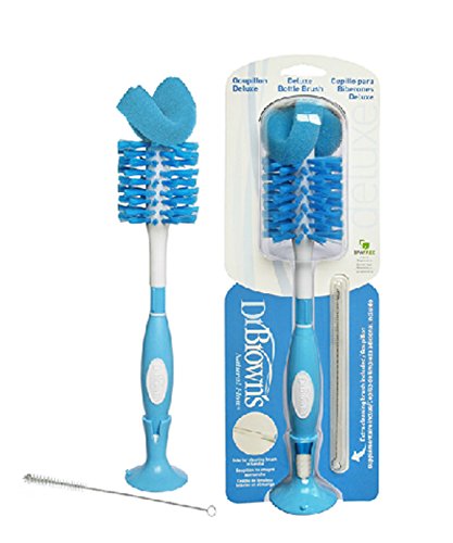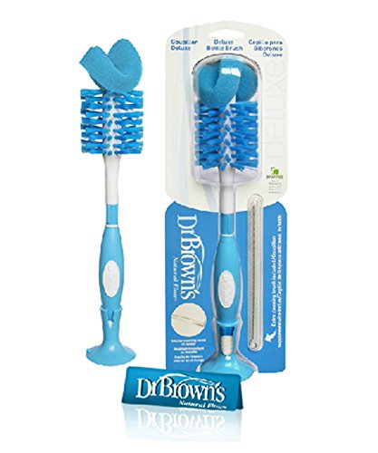 -. Feature : Dr Browns deluxe bottle brush is the easy and effective way to clean Dr Browns baby bottles and bottle nipples / 3 in 1 cleaning features, including a high quality sponge and bristle combination for quick bottle cleaning, chevron channels on the handle base for cleaning bottle nipples, and an interior cleaning brush in the handle for reaching all areas inside bottles / Non slip handle allows for easy gripping in soapy water, and a suction cup storage clip makes it easy to hang brush near sink / Top rack dishwasher safe / Perfect for parents seeking bottle cleaning convenience and ease