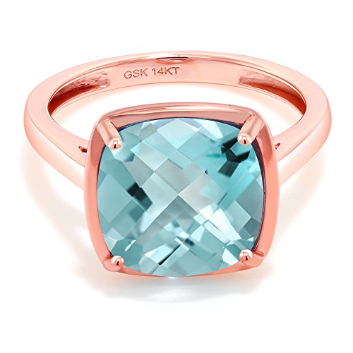 -. Title : 4.65 Ct Cushion Checkerboard Sky Blue Topaz 14K Rose Gold Ring
