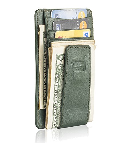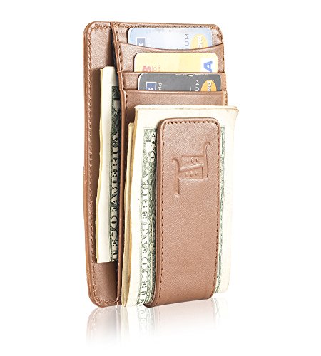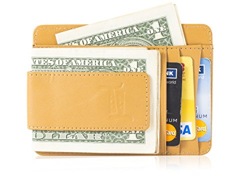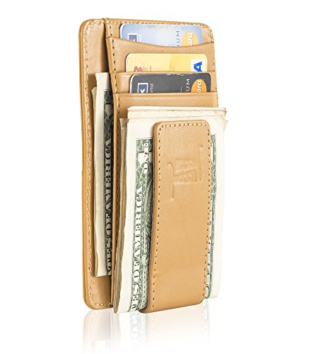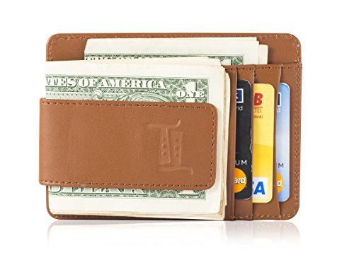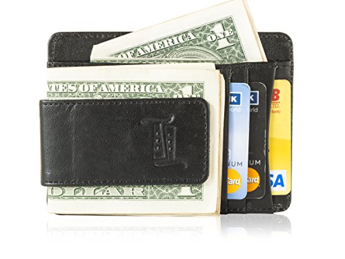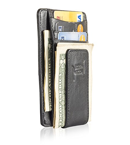 The leather wallet has mangetic clip to hold your bills and 4 card slots.