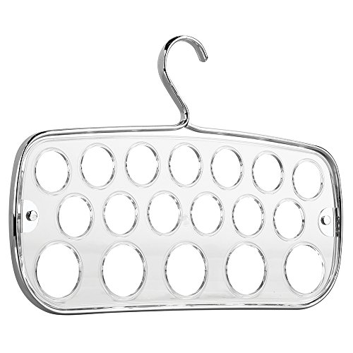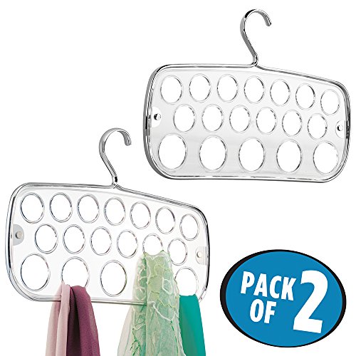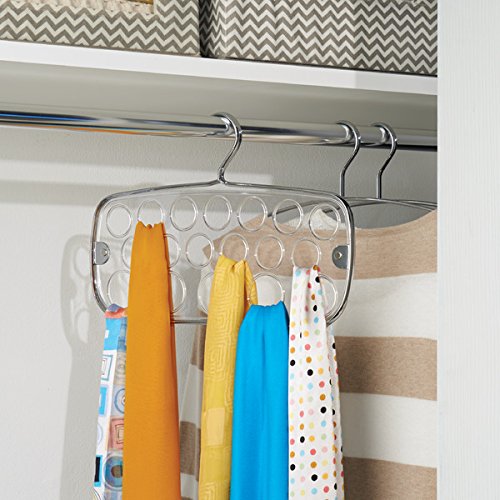 mDesign Scarf Closet Organizer Hanger, No Snag Storage for Scarves, Ties, Belts, Shawls, Pashminas, Accessories - 18 Loops, Chrome/Clear