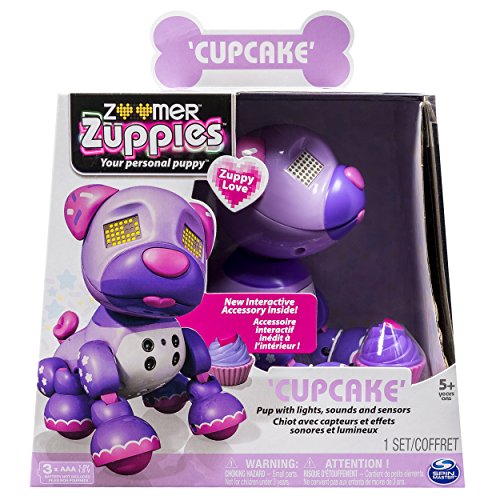 Now kids everywhere can fall in Zuppy Love with Cupcake, the cutest Zuppy Pug around. She loves to bake, eat treats and share with her friends. The more you play with her, the happier she becomes! Cupcake has special sensors on her head and chest so she knows when you’re petting her. Her interactive LED eyes light up telling you exactly how she’s feeling. And if you’re in the mood to play, you’ve just met the right pup! With all-new games like Bark Hero and Howler, new sounds and a super cute interactive “chew toy”, Cupcake can’t wait to show you everything she can do. Discover her unique secret trick, watch her protect your stuff in Guard Mode, and unleash a Zuppy puppy party by bringing two Zuppy Love friends together (Zoomer Zuppies sold separately). Collect Pupstar, Sport and Glam and watch them socialize, share secrets, tell jokes, sing songs and more. Just touch their button noses together and let the cuteness take over! Zuppy Love’s only interact and socialize with other Zuppy Love puppies. To know if you have a Zuppy love, just look for the Zuppy Love heart with a “Z”. Zuppies are kid-powered, so give them a push and watch how they roll. Fall in Zuppy Love with your very own personal puppy, Cupcake. Zoomer Zuppy Love – Full of Life, Full of Love!Feature