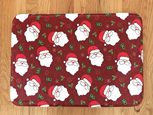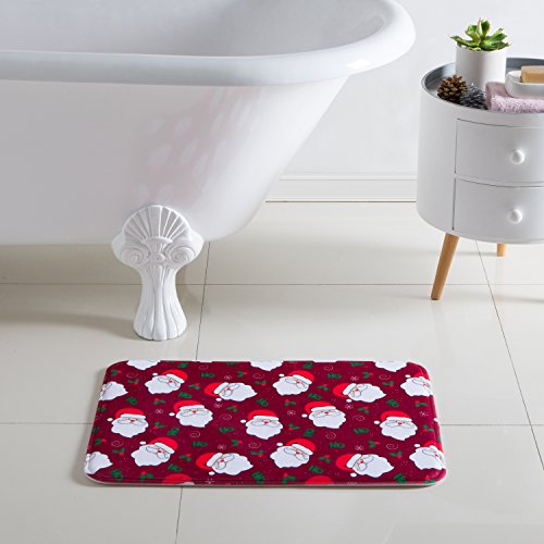 Holiday Santa Claus Memory Foam Bath Mat: Cute Santa Theme on Burgundy Background (17" x 24" inch)