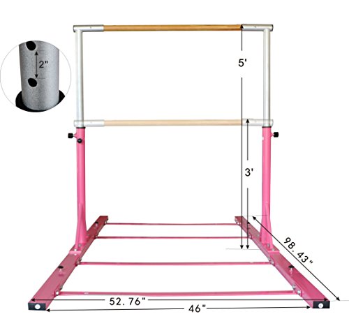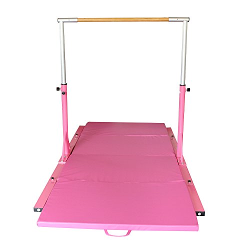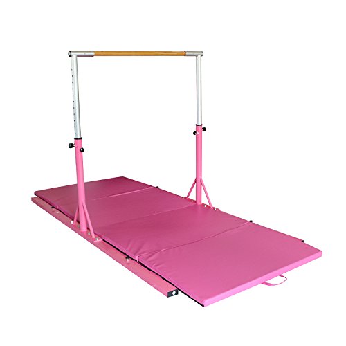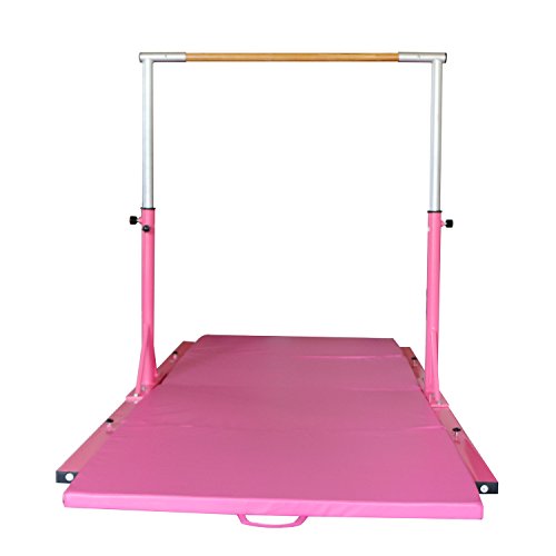 Studio : Bestmart INC Publisher : Bestmart INC Binding : Misc. Product Description Description: Horizontal Bar Material: Made of Iron Steel Heavy duty: The Total Weight 105lbs with two packages. Portable: 13 different height options are available. ADJUSTS FROM 36" TO 60" EVERY 2", 36,38,40,42,44,46,48,50,52,54,56,58,60 inches high, which will be so flexible for customer to adjust the height. Well constructed: Triangle structure stable the base; Two side plus bars make the base more secure; the wooden bar sticked into a steel bar. Specification: Color: Pink Height options: 13 Material: Iron Steel Height : Adjustable from 3 feet to 5 feet at 2" interval Square tube: 3"*1.6"*0.08" ; Round tube Dia. :1.9" Product Size: 8.2ft L*5ft W*(3ft-5ft) H Inner width: 3.9ft Max Weight Support: 440lbs Gross Weight: 127.6lbs Folding Mat Color: Pink Material: EPE Pearl Wool (Interior)/ Eco-Friendly PU (Cover) Dimension: 4' X 10' X 2' (W X L X Thickness)