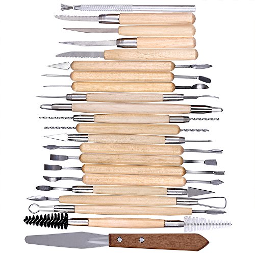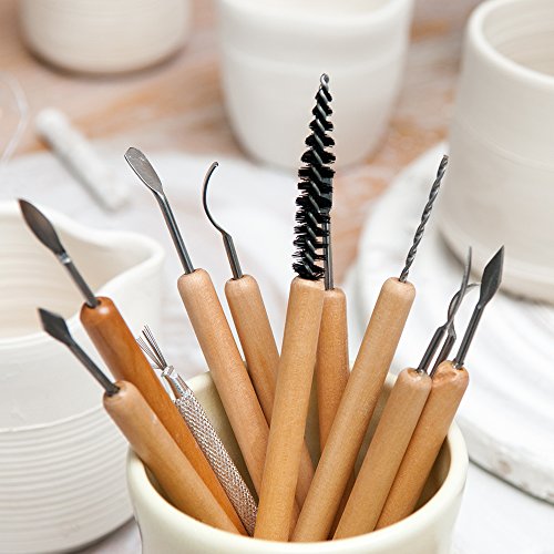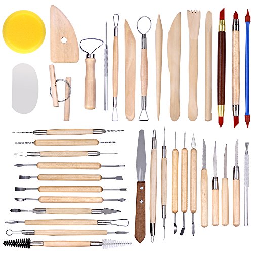 Caydo 38 Pieces Wooden Pottery Sculpting Clay Cleaning Tool Set