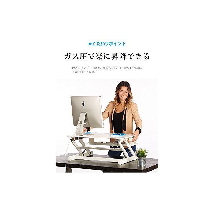 데스크 워크가 강한 아군!양측의 레버에 책상의 높이를 바꾸고, 서거나 앉거나 자세를 간단하게 바꾸는 것 를 할 수 있습니다.가압식의 승강 기능이 붙어 있으므로 여성에서도 거뜬히 오르내림으로 옵니다.