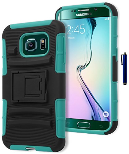 Galaxy S6 Edge Case, Bastex Heavy Duty Hybrid Protective Kickstand Holster Case - Soft Neon Green Silicone Cover Hard Black Kickstand Holster Case for Samsung Galaxy S6 Edge G925**INCLUDES STYLUS**