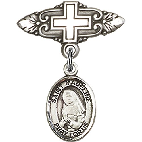 -. Title : Sterling Silver Baby Badge with St. Madeline Sophie Barat Charm and Badge Pin with Cross 1 X 3/4 inches