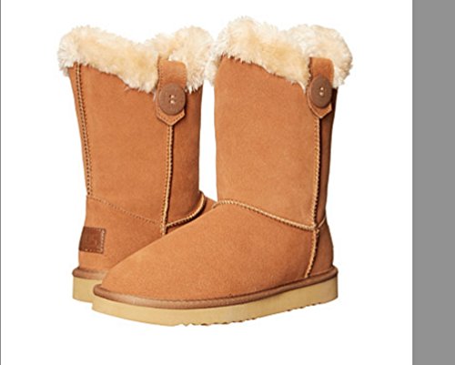 Product DescriptionEnjoy the cold winter weather with the tall suede boot with two fashion buttons and fur lining.0