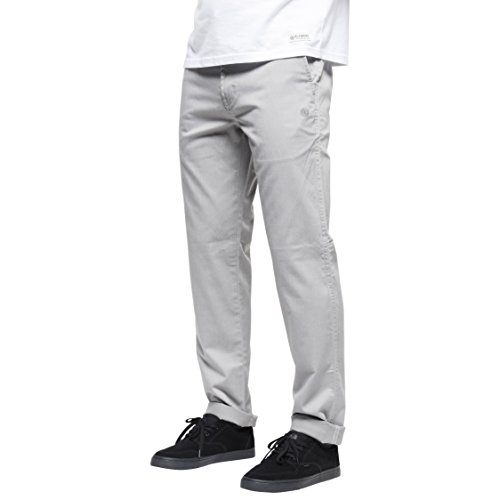 Product DescriptionSlim straight chino with back welt pockets, Element tree embroidery and stoner wash. 15 inch0