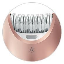脱毛ヘッドには手元を照らす一体型ライトを搭載。毛の取り残しを防ぎます。
