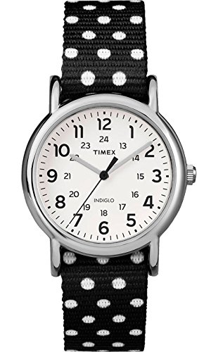 -. Title : Timex TW2P87100 Weekender Women's Analog Steel Watch Polka Dot Reversible Nylon Strap