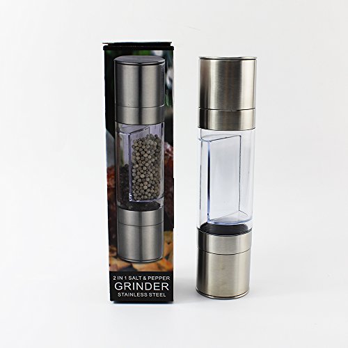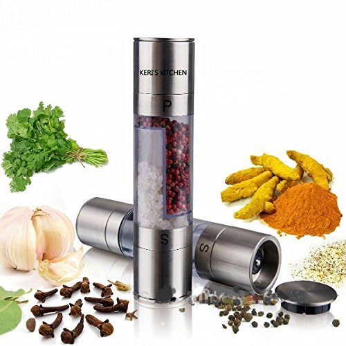 2-in-1 Salt and Pepper Grinder Set by Chef Keri- Premium Salt and Pepper Mill - Ceramic Grinding Mechanism Mill, Sleek Stainless Steel Design