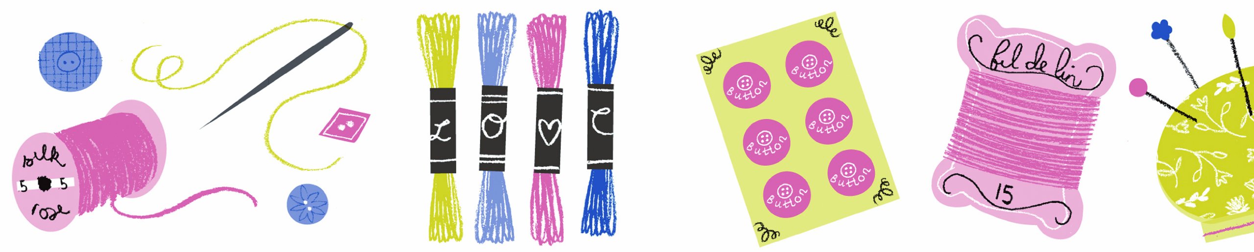 I designed cute small objects such as thread wound, button, pincushion, scissors, etc with pastel tone as a theme of handicraft.
