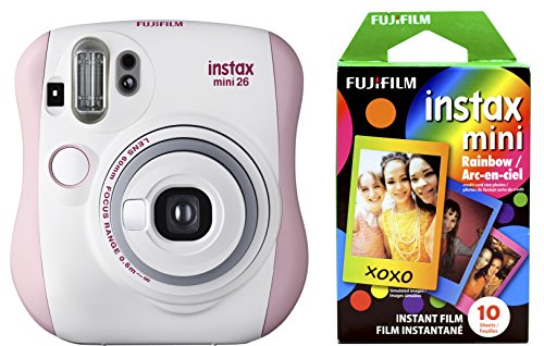 Fujifilm Instax Mini 26 + Rainbow Film Bundle - Pink/White