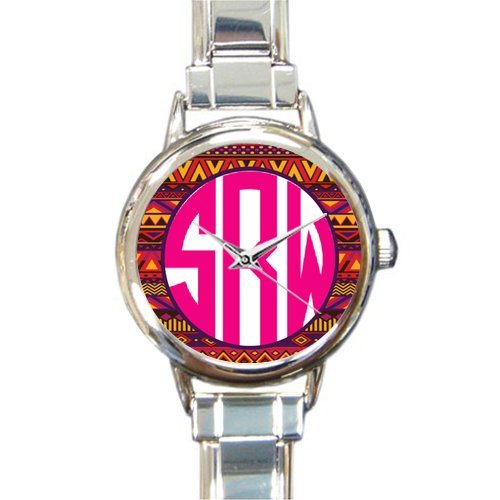 -. Title : Personalized Watch Colourful Aztec Pattern Round Italian Charm stainless steel Watch
