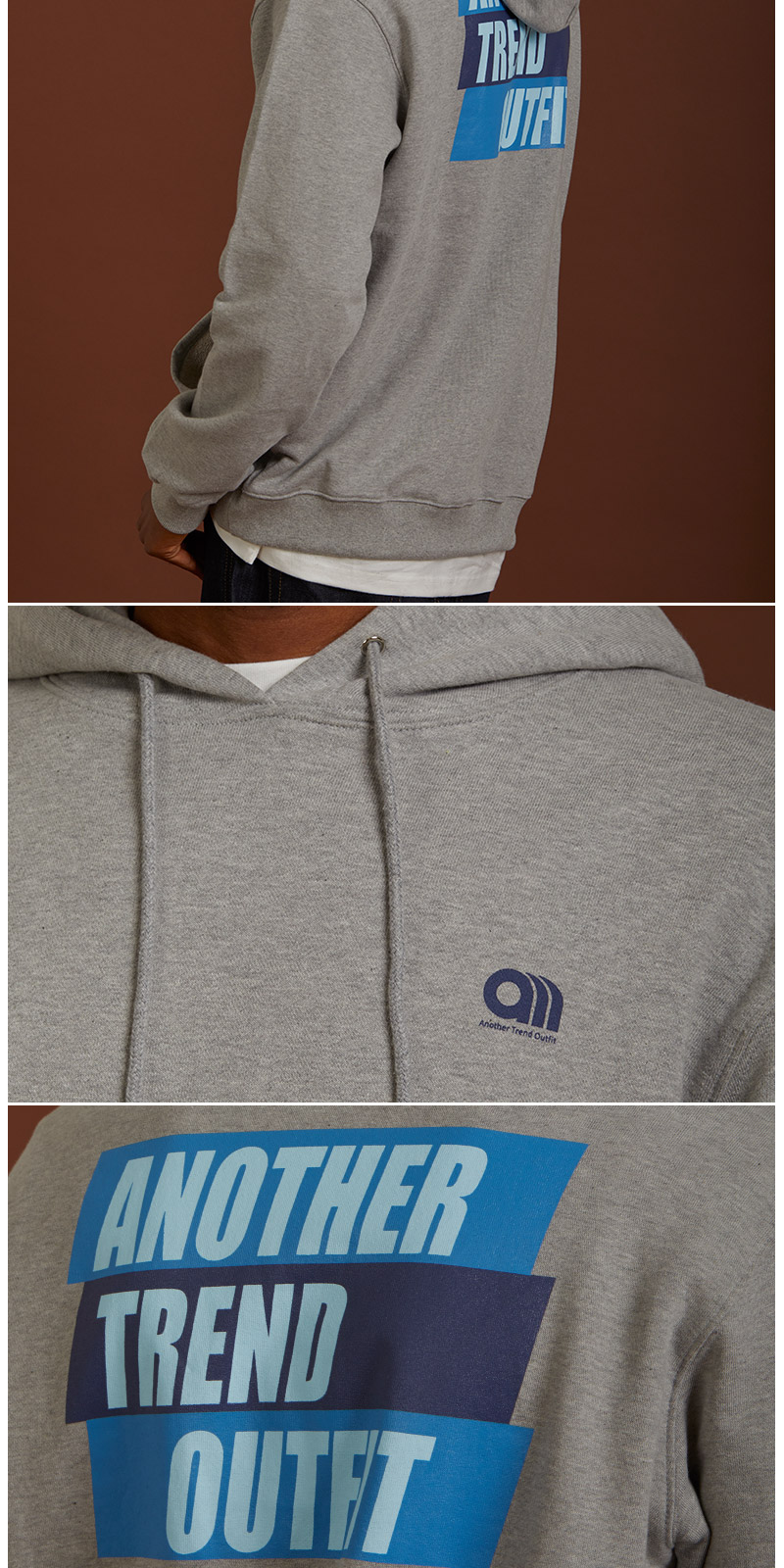Back 에는 ATO의 풀네이밍인 Another Trend Outfit에 조화로운 컬러를 사용해 배열 하여 유니크함을 강조 하였습니다.