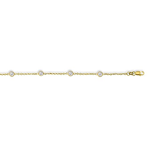-. Title : 14k Yellow Gold Fancy Design CZ Anklet - 10 Inch