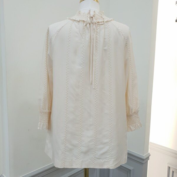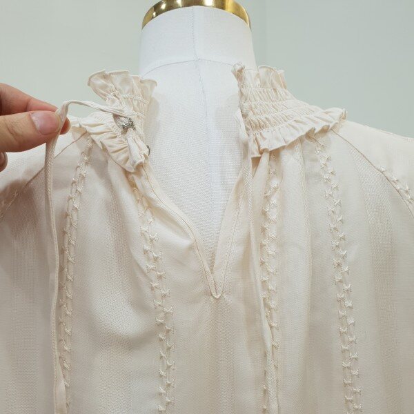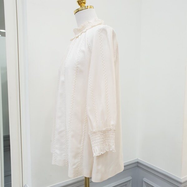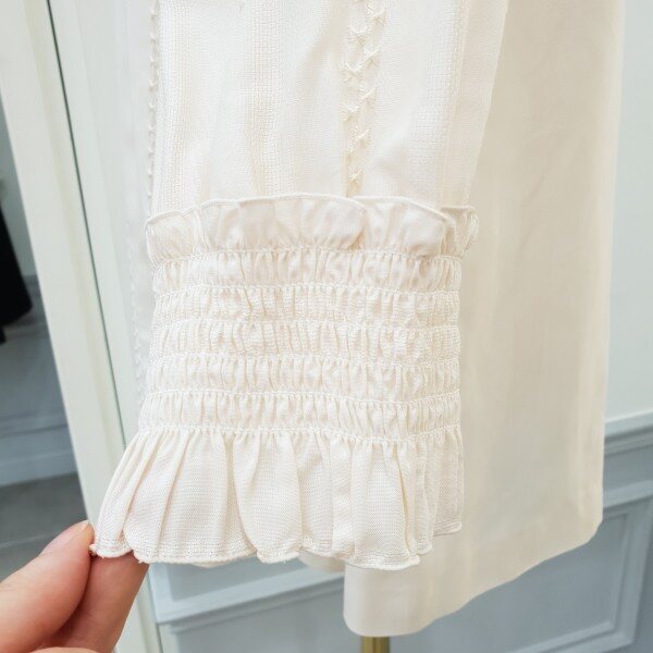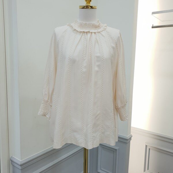바탕자수처리로 고급스럽게~살짝A라인핏으로 몸에핏되는거 싫어하시는분께 추천드려요목.소매는 밴드스모킹처리로 신축성있습니다 소매길이 10부기장감 입니다~♡♡