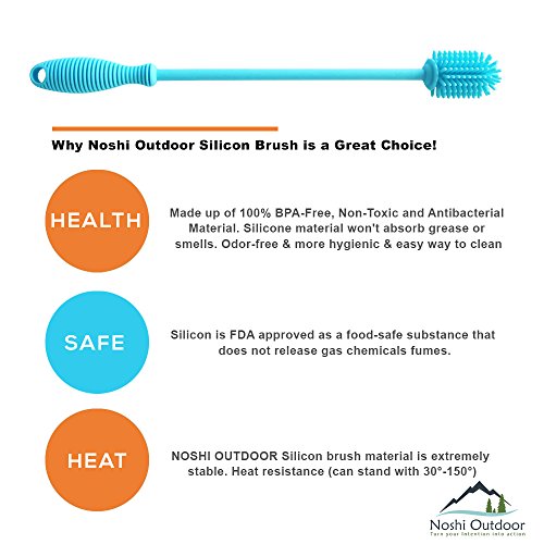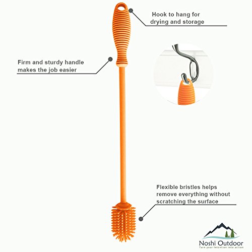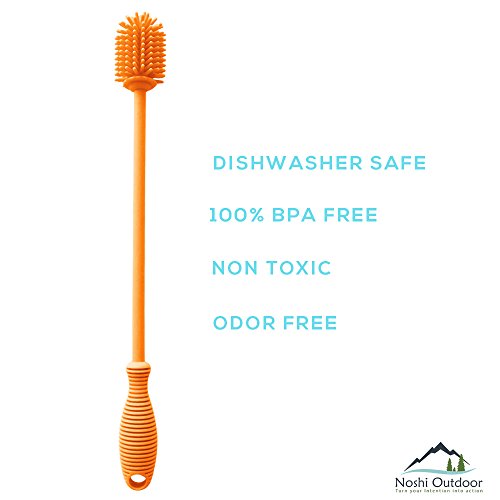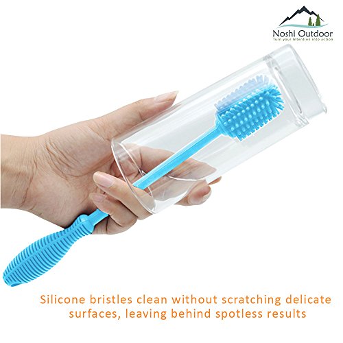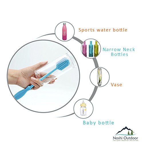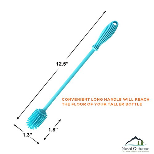 - ✔ ✔FAST & EASY CLEANING TOOL: 12” Silicon Brush have flexible bristles and easy to work with stem make it possible to reach every nook and crevice. It can easily reach the bottom and clean all inside area, suitable for your bottles, pitcher, brewing bottle, glass jars, baby bottles, breast pumps, vases, carboys, tea pots, tea infuser, tumblers, hydro flask, thermos, sports water bottles especially the long narrow neck ones.