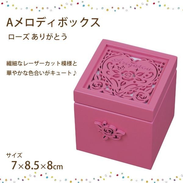繊細なレーザーカット模様と華やかな色合いがキュートなオルゴールボックスです。ジュニア世代の贈り物としてもぴったりです。 製造国:中国 素材・材質:MDFミラー 商品サイズ:7×8.5×8cm 仕様/ミラー・リングさし付 曲名:ありがとう(いきものがかり) ※サプライヤー直送品 ※2019年3月下旬入荷分予約受付中【商品名】Aメロディボックス ローズ(ありがとう) G-6295P