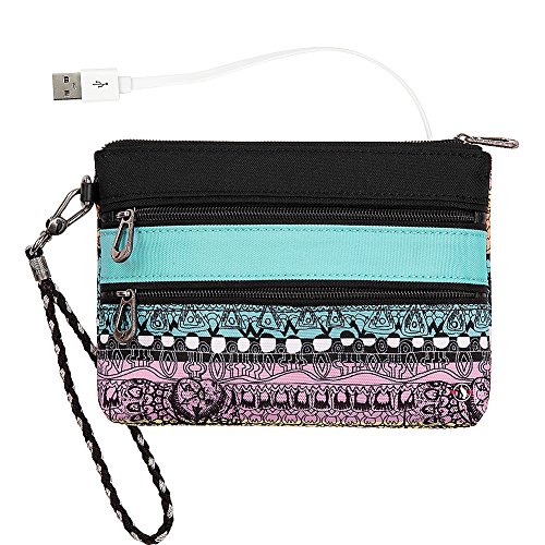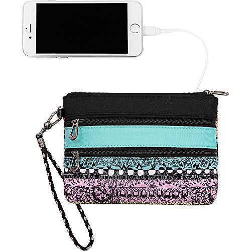 -. Binding : Apparel -. Brand : Sakroots -. Department : womens -. Feature : 8.5 in l x 0.5 in w x 6.3 in h; drop: 6 inches / 2 exterior zipper pockets / Interior contains back zipper pocket and 2 front multi-use pockets / Includes usb cable to charge battery, inside contains battery pack good for approx. 1 full charge / Does not include cable for phone, removable wristlet strap -. Label : Sakroots -. Manufacturer : Sakroots -. Model : 107846 -. PackageQuantity : 1 -. ProductGroup : Apparel -. ProductTypeName : HANDBAG -. Publisher : Sakroots -. Studio : Sakroots -. Title : Sakroots New Adventure Echo Charging Wristlet