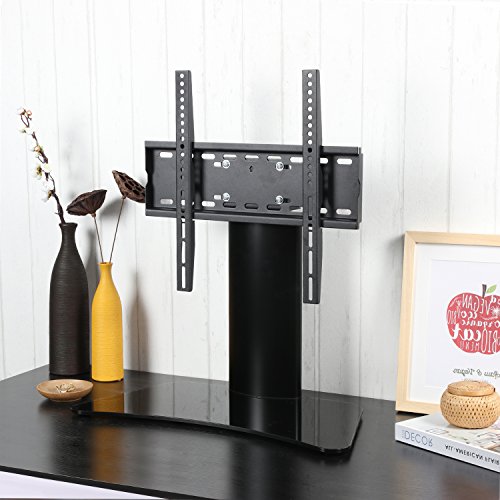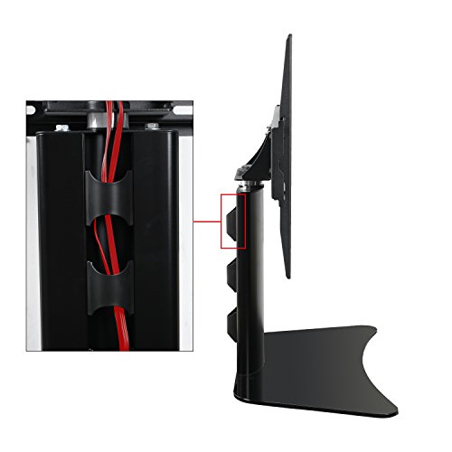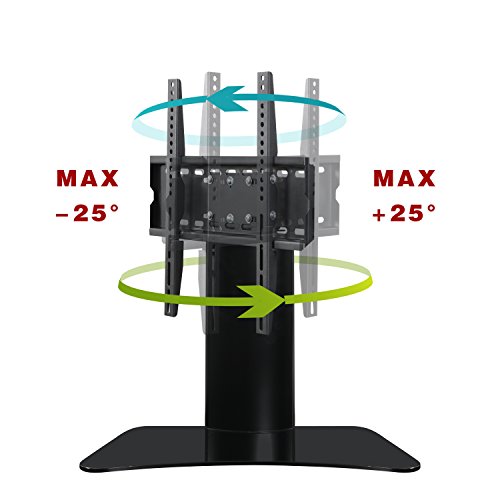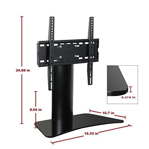 -. Feature : Universal Swivel TV mount Table top Glass base size in 18.55'*10.7' thickness by 8mm, Black tempered safety glass in max loading for 55lbs. Strong aluminium tube make the max loading achieve 100lbs. / Swivel TV mount 25 degree left and right swivel function make the TV in any suitable view for your watching. / Cable management system great helpful for your cables and wires arrangement. Make your TV and AV media in nice organization. / Swivel TV mount with 8mm thickness glass base with strong aluminium construction design, make full unit very stable / Universal tv mount from VESA75*75 UP TO 400*400 suitable for most of Led/Lcd TVs