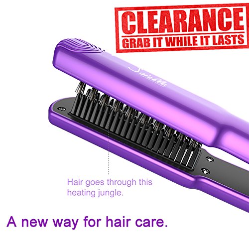 2.【No pounding on scalp for straightening purpose】This is not a flat iron for super straight hair; Long press of + to turn it on; the best hair straightening brush 2.0 for short and medium hair ever; compared with a paddle style hair straightening brush, it will not pound on scalp; It has 2 sides of heats and pressures, so more easier to handle and straighten your hair, especially for hair flip.