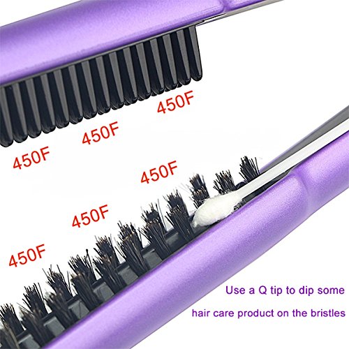 1.【New way for hair care】Use a Q tip to dip small amount of hair care products on the natural boar bristle. The heat and bristle will help the damaged hair to absorb the nutrition better. Since the bristle will have more contacts with hair when going through it, you will feel the nice volumn and puff. Applying hair finishing spray, it will be a perfect natural straightened look. The best choice for hair care, volume, and natural straightening look for short hair, medium length hair and BOB hair.