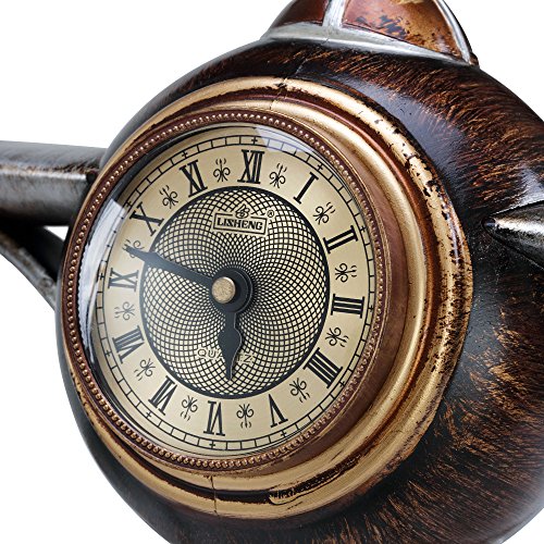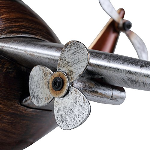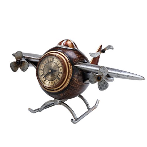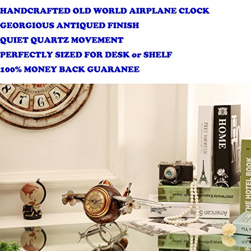 HANDMADE LARESDOMI VINTAGE STYLE AIRPLANE CLOCK is a delightful accent for any room, desk, or shelf. It's a very creative shelf clock with spectacular old world design. It features a beautiful antiqued finish with lots of features and detail. You would expect to see this level of detail only on a much more expensive clock. The antiqued copper look body with silver style wings and propellers gives this piece a terrific contrast of color and materials. WON'T TARNISH, LOSE COLOR, OR MOLD thanks to the very high quality natural resin. This is moisture proof and maintains color for many years. You can expect this clock to last and work well for 20 to 30 years, making it a great family heirloom. You will be proud to pass this down to your children and grand children one day. KEEPS EXCELLENT TIME with the modern quartz inner works that record minutes, seconds, and hours without fault for years. Runs on a single economical button cell battery that lasts for a full 1 to 3 years. Making this a fine energy saving feature for your home or business. VERY SILENT OPERATION. You won't have a loud ticking clock irritating everyone. The Quiet Quartz Movement guarantees accurate time and precision while providing silent performance. Great for bedrooms, kid's room, or nursery. Works well for your quiet office or waiting room. 100% MONEY BACK GUARANTEE makes this your best bet for a no-risk purchase. Many customers love this clock so much they return to buy a 2nd and 3rd one for work and elsewhere in their home. HURRY AND BUY NOW while we have a new shipment of these handmade clocks in stock. This makes a much appreciated gift for friends, family, and co-workers. 0 |