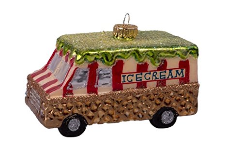 Krebs Ice Cream Truck Glass Christmas Ornament with Red & White Stripes - 4" Long
