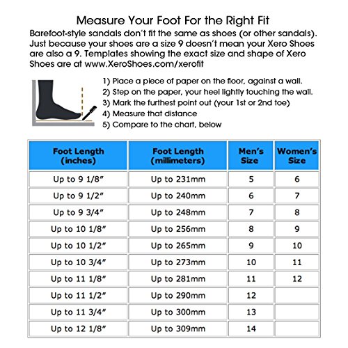 "The ultimate combination of protection, light weight, comfort, natural flexibility, versatility, and durability." From Xero Shoes -- seen on ABC's Shark Tank. The NEW Umara Z-Trail gives you the protection you expect from other sport sandals, but at up to 76% less weight and bulk. A single Men's 9 is only 5.4 ounces, and just 10mm thick. It'll roll up to fit in your pack or pocket. The Z-Trail even floats! Comfortable on a trail hike, in a boat, or taking a stroll downtown. Wear them all day, or just keep them handy for a stream crossing or to slip on when your feet need to recover, breathe, and move after you pull off your running shoes, bike cleats, or hiking boots. Almost 100,000 people in 94 countries use Xero Shoes as beach shoes, camp shoes, barefoot running sandals, Crossfit and weightlifting shoes, and for everyday use. The Z-Trail has an exclusive 3-Layer FeelLite sole which lets you enjoy natural, barefoot-style movement, but with the protection and comfort you like. Great grip with our FeelTrue rubber traction pads, force dispersion with the TrailFoam middle layer, and surprising comfort with the top BareFoam layer. A "zero-drop" non-elevated heel means your body retains it's natural posture wherever your Z-Trails take you. Tubular webbing means no edges on your skin. Proprietary hardware means easy-in-and-out, but the Z-Trail stays on your foot securely. No latex. Vegan. GUARANTEED performance -- Xero Shoes have a 5,000 mile warranty. See the company's website for full details. GET THE RIGHT SIZE: To get the correct fit, follow the instructions above. Or contact the Seller for templates showing the exact shapes/sizes. Additional sizes/colors available at the company's website. Add To Cart Now! and Feel the Freedom, Feel the Fun, and Feel the World in your new Xero Shoes. 0 |