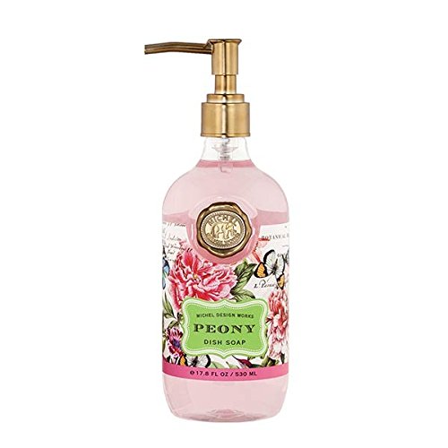 -. Feature : Lightly scented dish soap in a decorative pump dispenser / A generous 17.8-ounces / The enchanting scent of flowering pink peonies / Coordinate with aprons, towels and oven mitts brought to you by Michel Design Works / Look to Michel Design Works for luxurious, all-natural bath and body products and beautiful home and stationery items
