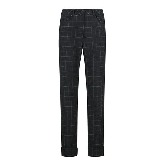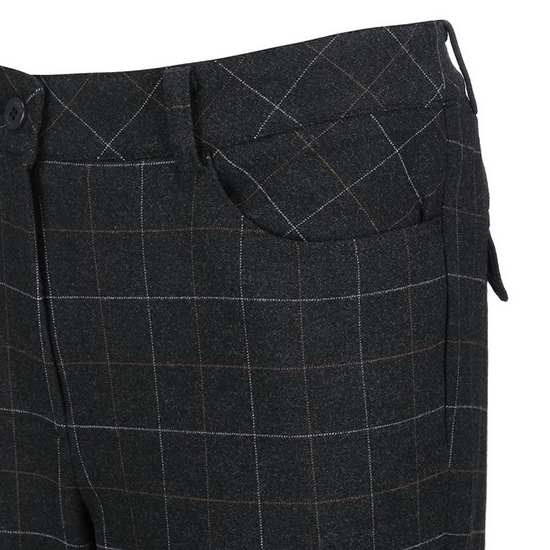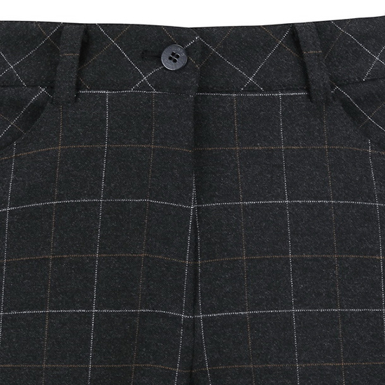 - 전체적으로 체크 패턴을 적용한 여성 팬츠.