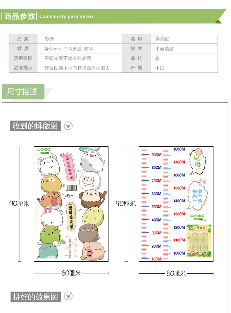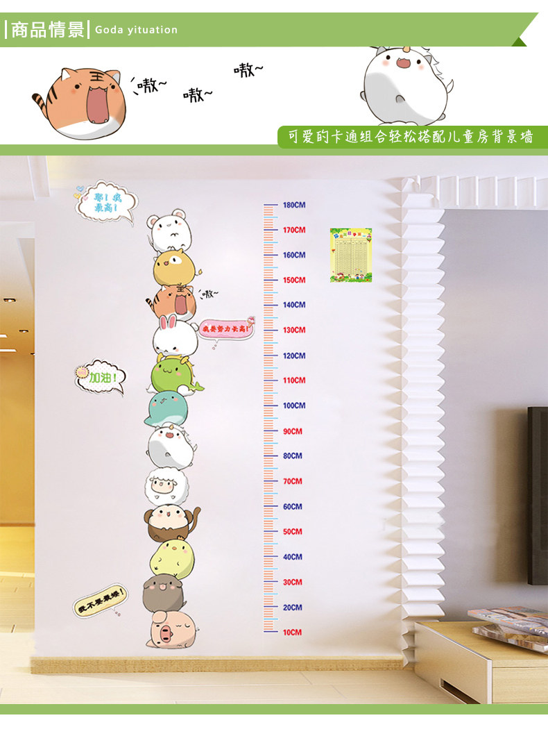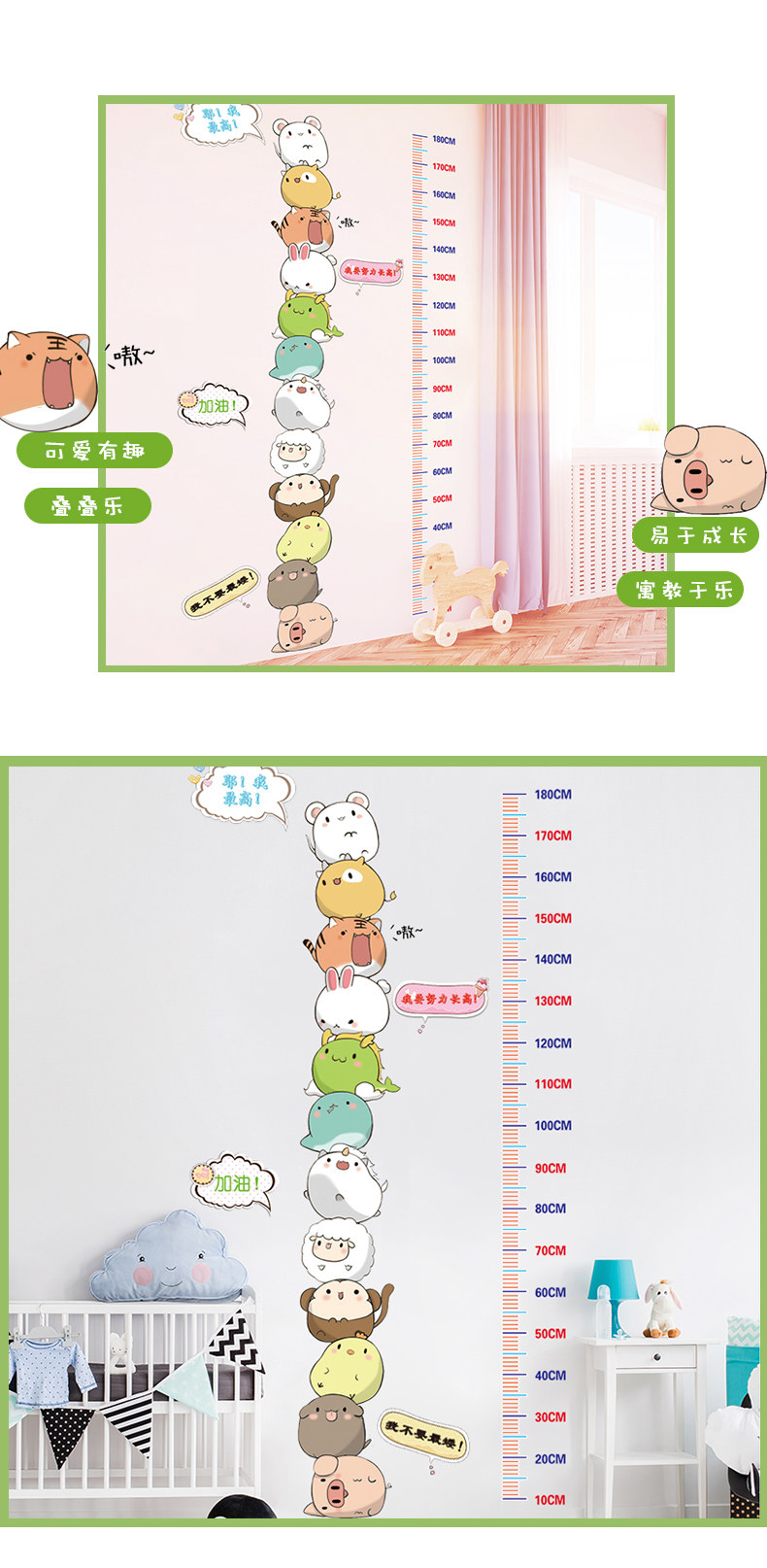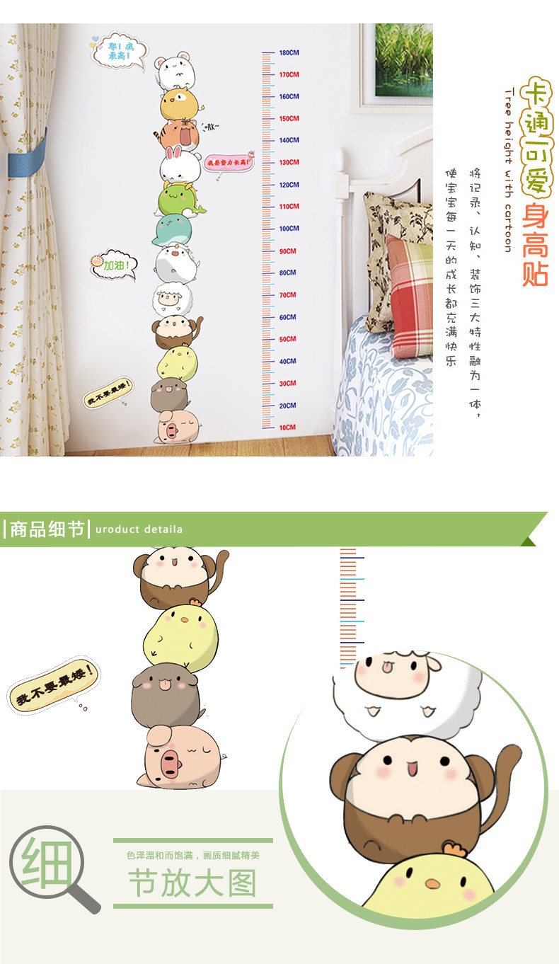 卡通叠叠乐动物身高贴儿童房装饰宝宝量身高墙贴壁纸墙纸自粘贴画