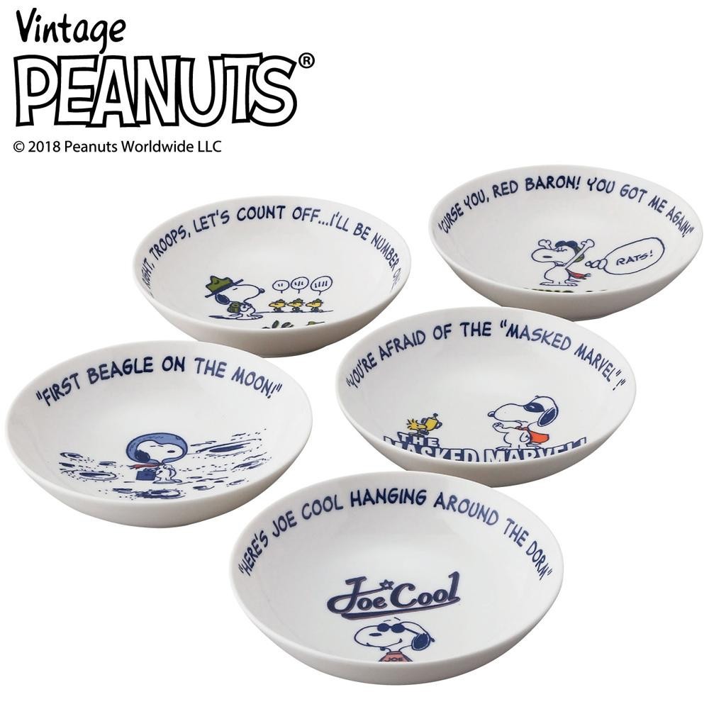 スヌーピーやウッドストックのイラストが入った、ボウル5個セットです。 製造国:日本 素材・材質:磁器 商品サイズ:約直径17×高さ4.5cm 仕様:食洗機使用可電子レンジ使用可 セット内容:5個セット ※サプライヤー直送品 ご注文後3~4営業日後の出荷となります【商品名】SNOOPY スヌーピー メニーフェイス ファイブボウルセット SN60-72