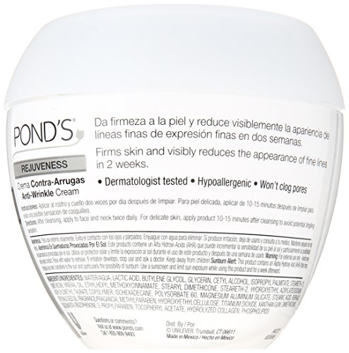 -. Feature : Pond's Rejuveness Anti-Wrinkle Cream with lacto nutrients and collagen / Firms skin and visibly reduces the appearnce of fine lines in 2 weeks / Lacto Nutirents contain alpha hydroxy acid and vitamin E that help to reduce the appearance of lines / Collagen is a natural fiber that firms skin / Dermatologist tested, hypoallergenic, doesn't clog pores
