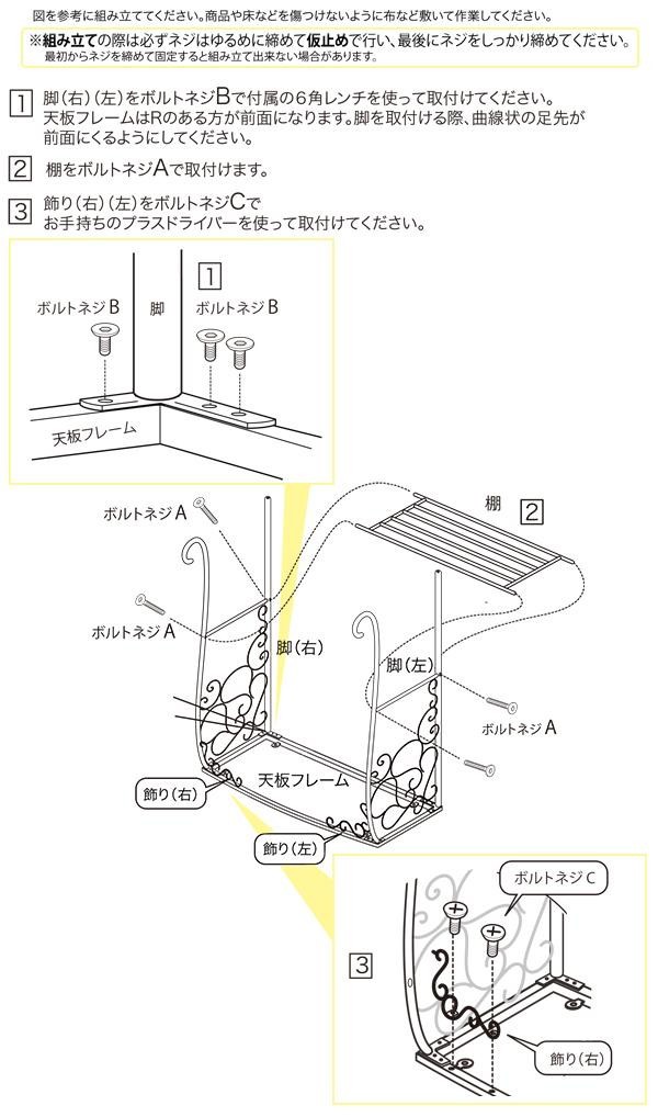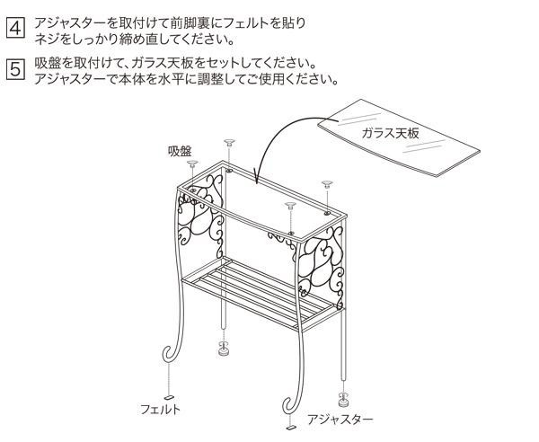 | 仕様 | 組立式 組立目安(時間/人数):約20分/1人 天板耐荷重:10kg 後ろ脚アジャスター付き |