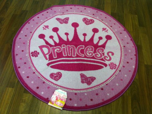 Your little princess will be inspired by the Heritage Kids Round Princess Rug. This round accent rug is pretty in pink decorated with butterflies and crowns and a pink polka dot border. This round pink rug is made of 100 percent imported nylon on its face and the back is made of foam latex. It is not stain resistant and soil resistant, as well as non-allergenic. To clean, vacuum your American Kids Round Princess Rug and spot clean with mild detergent and water. 39.4" diameter