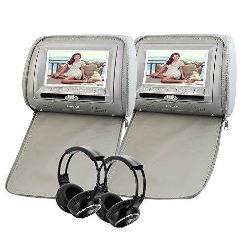 -. Title : Eincar Gray Pair of Headrest 7" LCD Car Pillow Monitor DVD player Dual Twin Screens USB/SD Built-in IR FM Transmitter 32 Bit Games, Zipper Cover with pair of infrared headphones