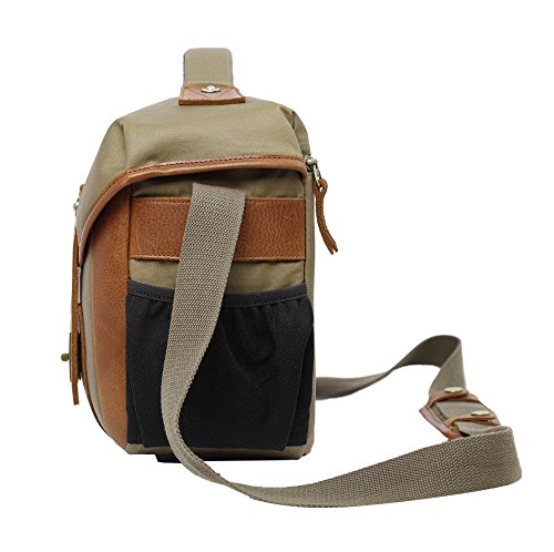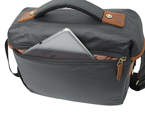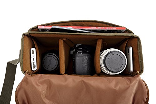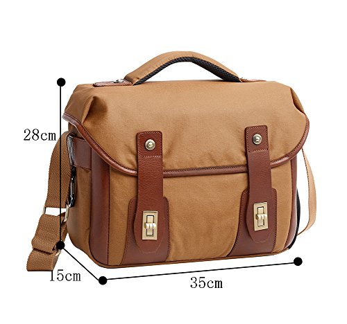 Product Description This is Genda 2Archer Men's Vintage Canvas DSLR SLR Camera Messenger Bag. It's very portable and you can put your iPad,DSLR camera,A4 magazine,books,notebook,wallets and other things in it. It's a high-quality and cool bag.There are 3 colors available for this bag. Please note that the color of the actual item may be slightly different from the photos due to lightings and other factors. And please make sure the size of the bag is OK for you before placing the order,thanks. Product Specifications: Size: 35cm(length)*15cm(thickness)*28cm(height) / 13.8*5.9*11.0 inch Color: Army Green/Khaki/Blue Package Includes: 1 x Genda 2Archer Canvas Messenger Bag 0