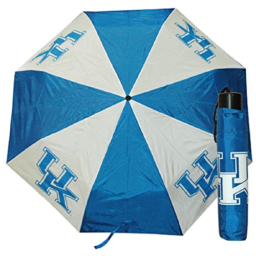 -. Feature : Kentucky Wildcats Umbrella / When folded measures approximately 9"x1.5"x1.5" / Blue and White with Kentucky Wildcats State Logo / Folding wrap included