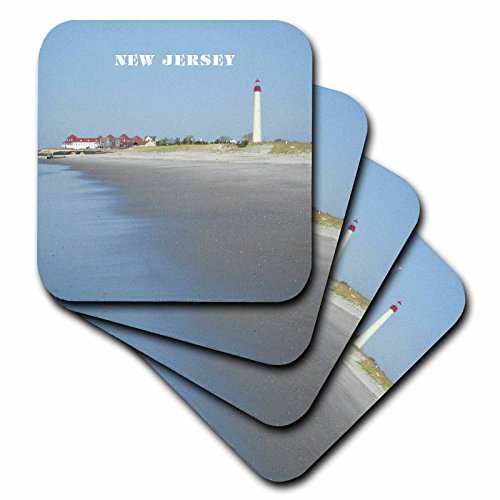 3dRose cst_80580_2 Cape May New Jersey with Lighthouse N Beach Soft Coasters, Set of 8