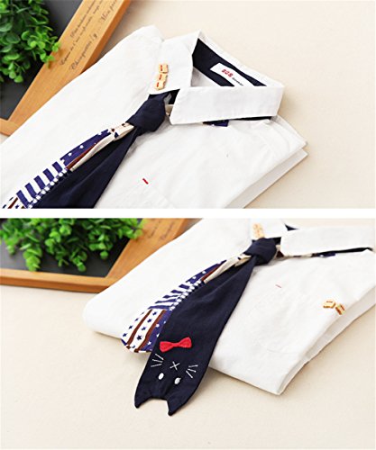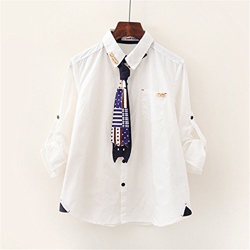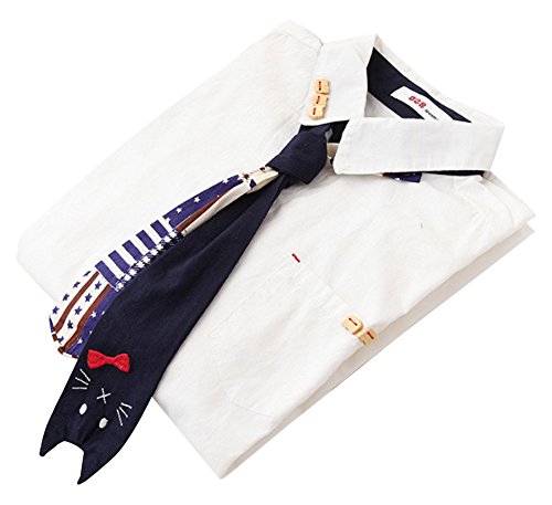 -. Title : mamamiya 森ガール 萌え レディースワイシャツ ブラウス 長袖 猫の柄のネクタイ 無地 通学 カジュアル おしゃれ ホワイト Mのサイズ
